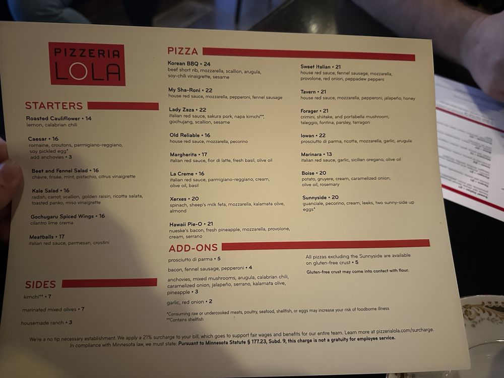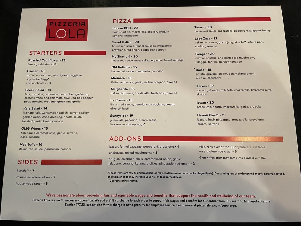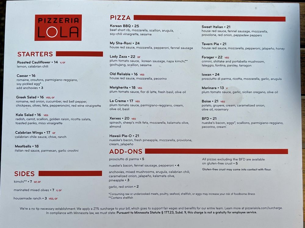 Pizzeria Lola in Minneapolis offers a casual dining experience with a diverse menu featuring Korean-inspired pizzas and other unique options. The restaurant is known for its vegan and limited vegetarian offerings, as well as its commitment to accessibility and eco-friendly practices.